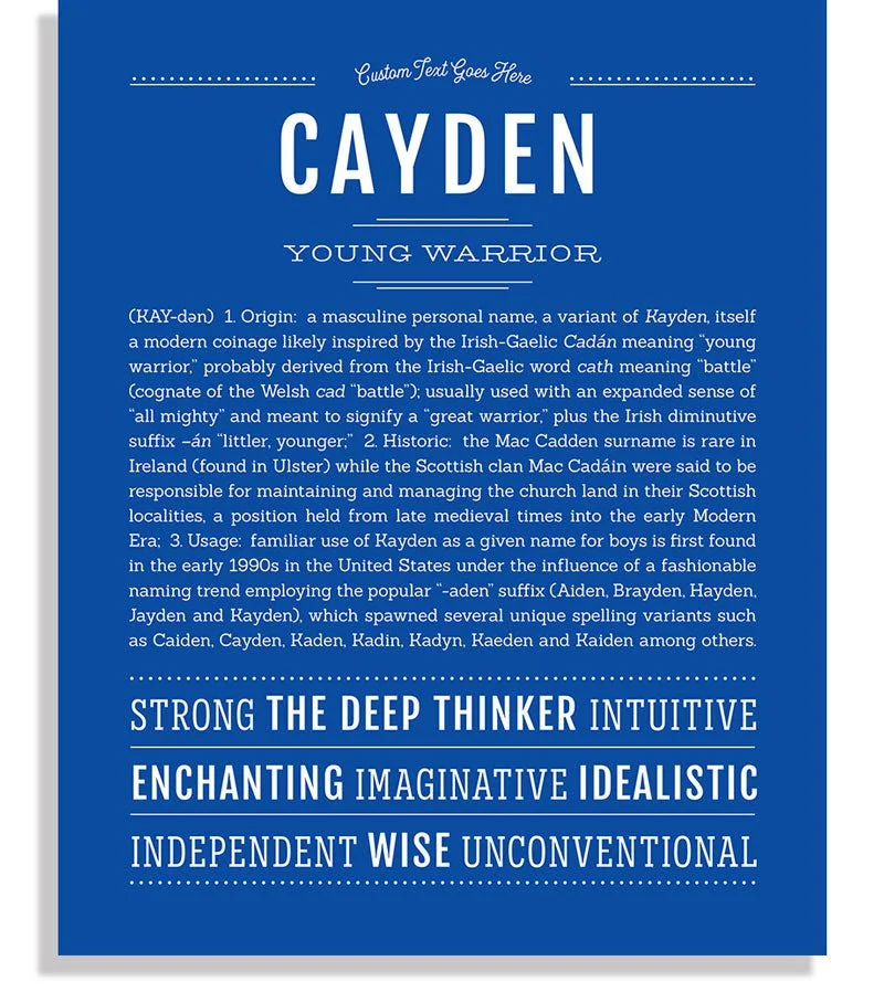 I chose 'CAYDEN' because it means survivor or warrior in some languages. I'm a long term survivor and proud of it!